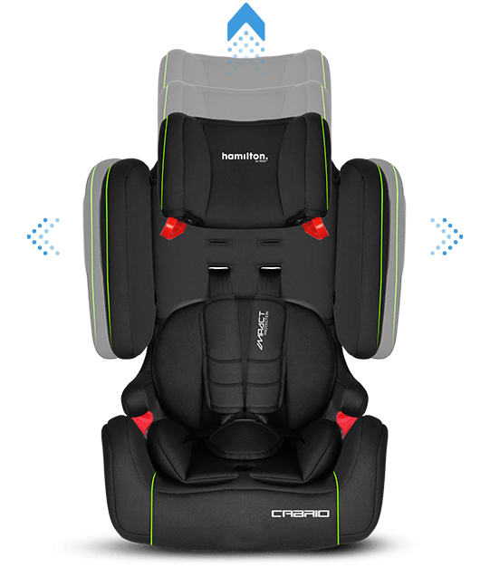 El reposacabezas ajustable y el panel lateral se adaptan a la perfección a la altura del niño y crecen automáticamente con él desde los nueve meses hasta los doce años.