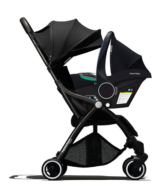 - Compatible con todos los carritos Hamilton mediante adaptadores para formar un sistema de viaje
