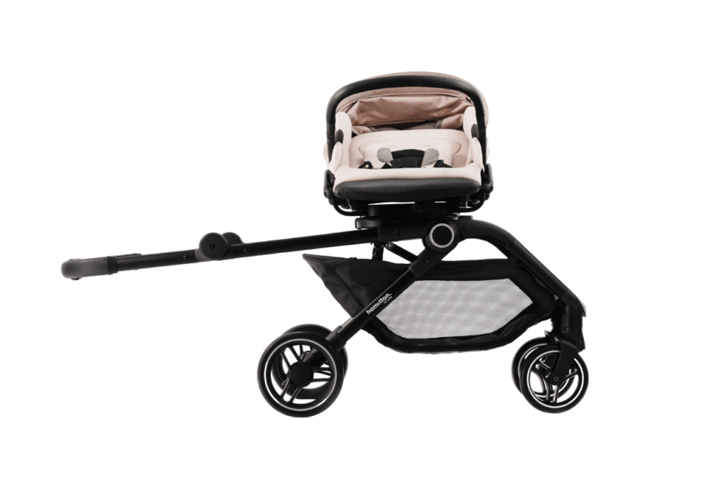 s Werelds eerste kinderwagen met een zitje dat 360 graden kan draaien terwijl het plat staat